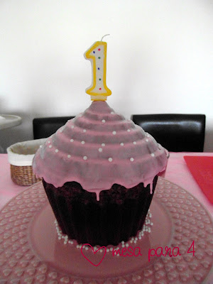 Vizinha, ficou um miminho lindo este teu cup cake gigante. Adorei a decoração simples mas muito bem feita